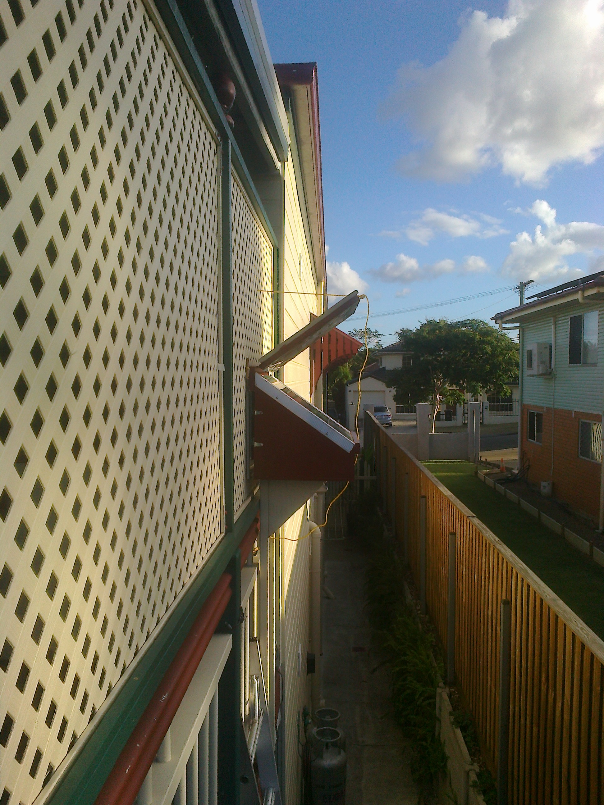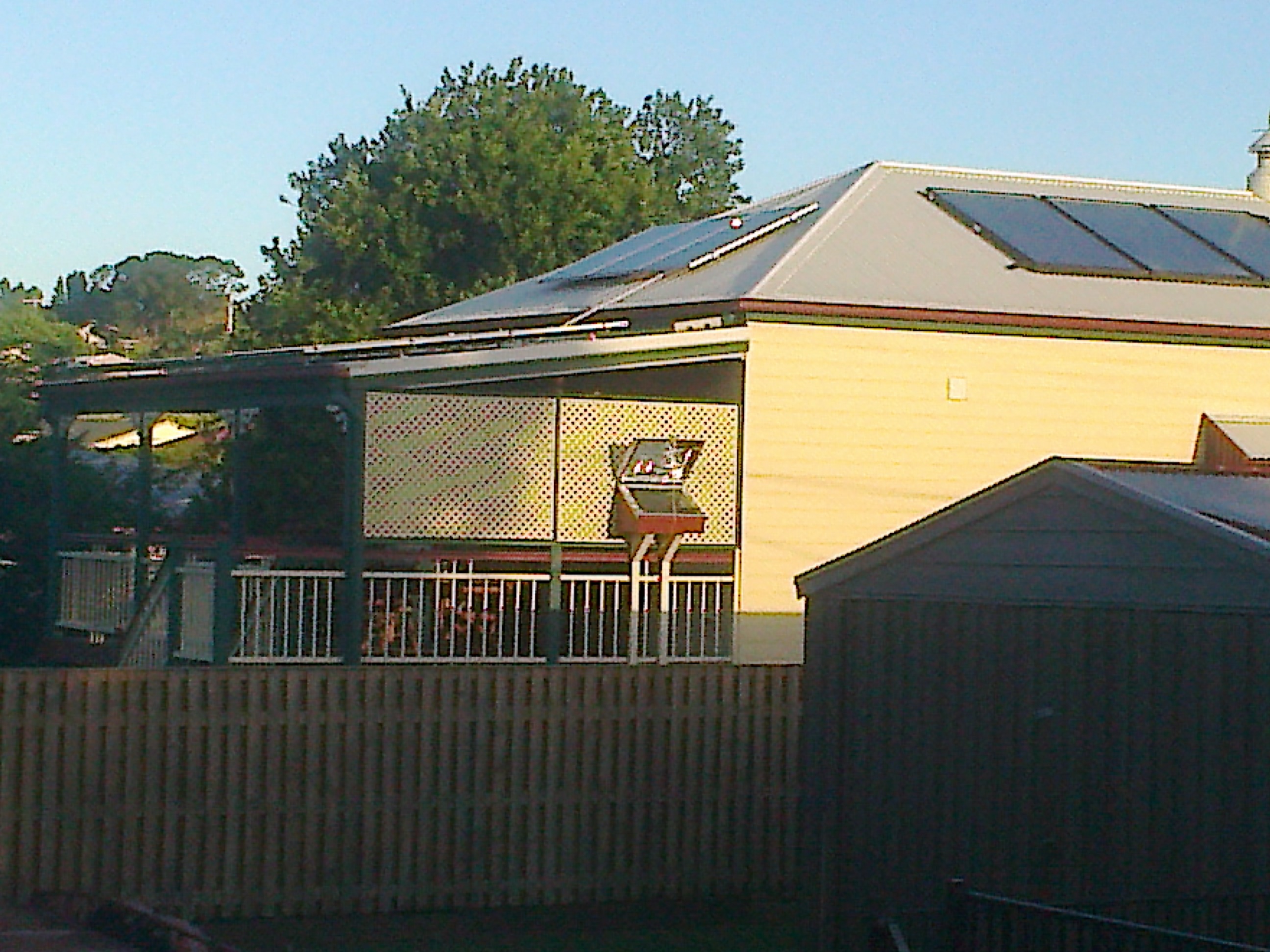 A solar wall oven for the western side of the upper rear deck in a fixed position easily accessed, close to the upstairs kitchen. Being fixed, it will only work in the afternoon. The design is home-made, tailored to the situation with the assistance of Stan (www.sizzlingsolarsystems.com) and various websites and images (do a google search of solar wall ovens).