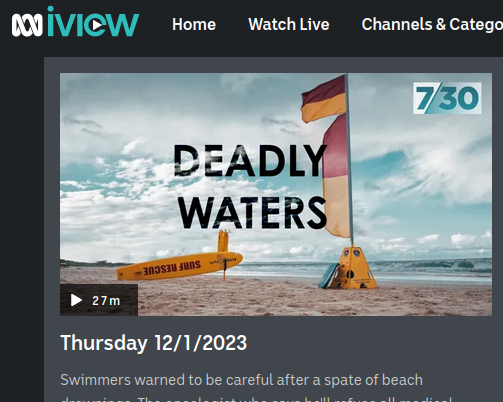 Surf life savers have reported a major spike in rescues and drownings. This year has seen about a third of the annual total in a matter of weeks, mostly at unpatrolled beaches. Thank you ABC for this timely report, warning people to be careful and providing a few helpful hints.