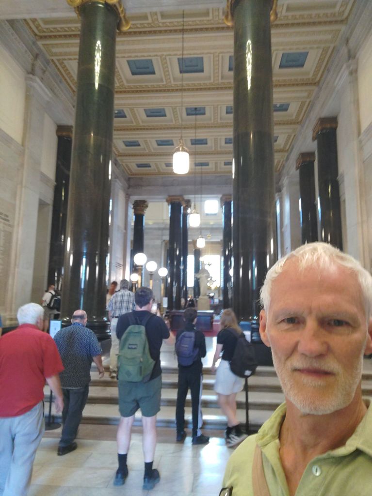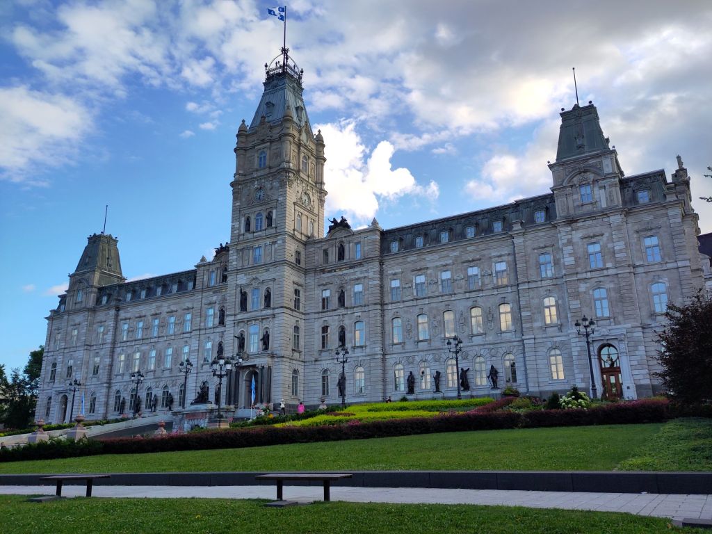 Montreal is on an island in the mighty St Lawrence River, upstream from where it mixes with the salt of the Atlantic Ocean.  On its banks, those statues got me wondering whether the Canadians ditched the Union Jack in their flag for a maple 🍁 leaf out of respect for the Quebecois.  A symbol of nature is touching (if only the politicians were genuine environmentalists), but Quebec’s separatist, ethno-nationalist ambitions are no secret, so I started wondering what their views on multiculturalism are.  What border controls do they envisage?  Later, I found some answers to my questions on a guided tour of the provincial parliament in Quebec City…