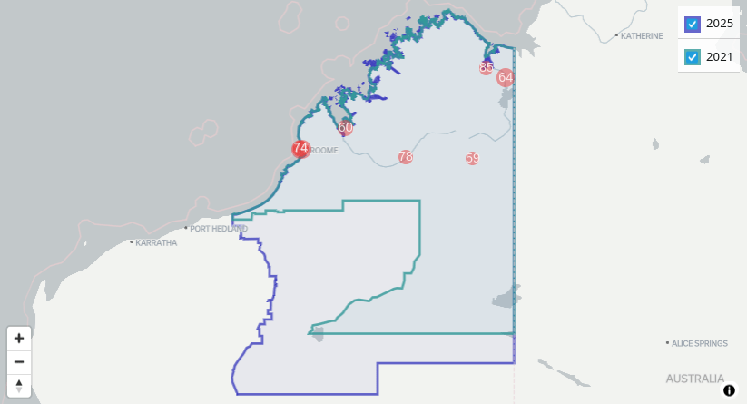 … but not in enrolled voters, the areas being brought into the electorate being largely unpopulated parts of East Pilbara, Wiluna and Ngaanyatjarraku Shires.