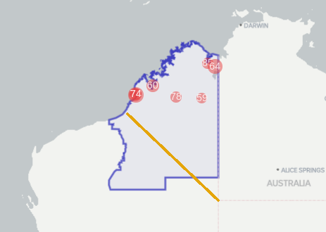 By far, Broome is the largest voting block (#74 in the map), followed by Kununurra (64), Derby (60) and Cable Beach (74). Broome and Cable Beach adjoin each other and lean left, while Derby and Kununurra to the east, lean right. Broome’s economy relies on tourism more than Kununarra’s, which has an agricultural industry supported by the massive Ord River Irrigation Scheme. Two regional airlines service the Broome – Kununurra – Darwin route. Nexus, based in Broome and AirNorth based in Darwin.