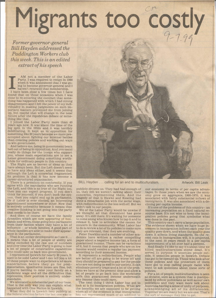 What we need are candidates who have the moral fortitude to tell their electorates that the era of division and tribal enclaves is over. That we (Australians) are back. We made a mistake. We gave new-comers mixed messages about our expectations: “You must accept Australian values.” … and … “You can celebrate your own culture.” These are not always compatible. We renounce multiculturalism and now we will all forge ahead together with a clear vision. That vision is the egalitarian spirit the Commonwealth was founded on. The first constitution formed by referenda, for the first ever continent-nation. A culture based on the merging of Aboriginal and British-Australian traditions, of a sustainable economy in which government and private enterprise complement each other. This is the culture so many came here – ostensibly – to enjoy. No more government-funded non-English language services, for example. If that is unacceptable, the only choice is to rely on relatives or their community to translate – or go to the country where your language is spoken.
