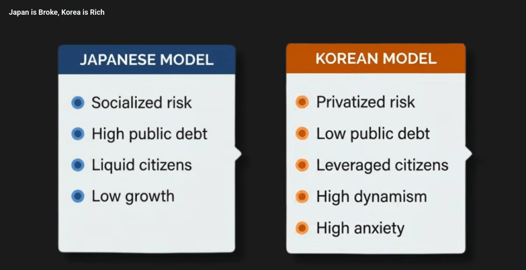 It seems the Japanese have gotten closer to this realization than any other post-industrial country so far. Although Youtube Channel Behind Asia says the price Japan pays is ‘stagnation’, the price Korea is paying is high anxiety.
