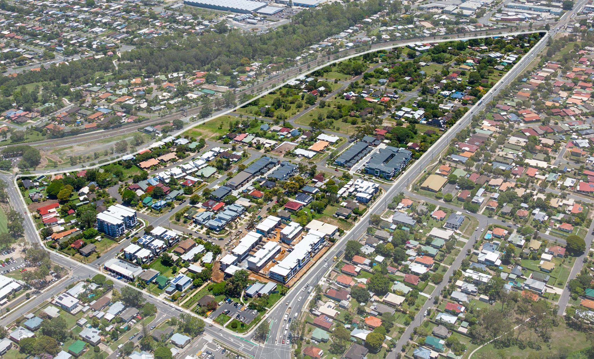 Cornerstone Living is in Coopers Plains bounded by Troughton Road, Boundary Road and the Gold Coast passenger train line. “In 2010 the Brisbane City Council under the LNP began planning a redevelopment of the site and put it out to tender along with the state government under the then ALP Premier Bligh. Consolidated Properties is the company behind the $400 million master-planned development that is privatizing government land and public housing.” Brisbane Times August 28, 2012.
